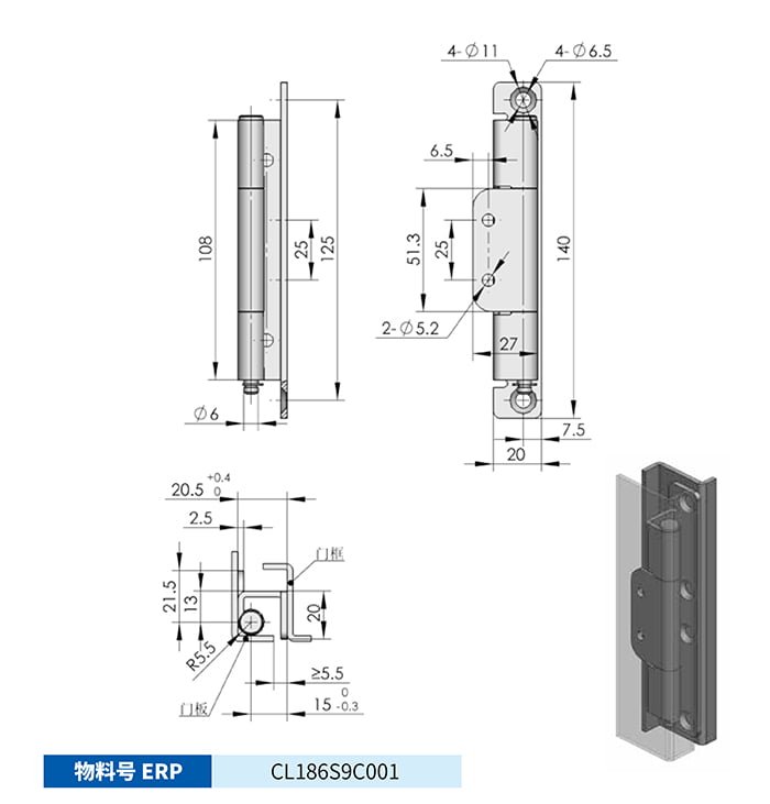 Introducing the CL186 Carbon Steel/304 Stainless Steel Hinge, a pinnacle of engineering excellence designed to elevate your projects with unmatched durability and performance. Crafted from high-quality carbon steel and stainless steel 304, this hinge is built to withstand the rigors of daily use while maintaining its structural integrity and aesthetic appeal.