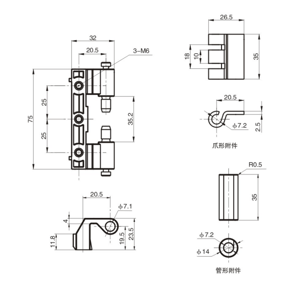 Material Composition: The CL201-1/CL201-1A features a robust construction utilizing high-quality zinc alloy paired with a resilient carbon steel pin. This unique combination not only enhances the overall strength of the hinge but also provides excellent resistance to wear and tear, making it an ideal choice for various industrial applications.