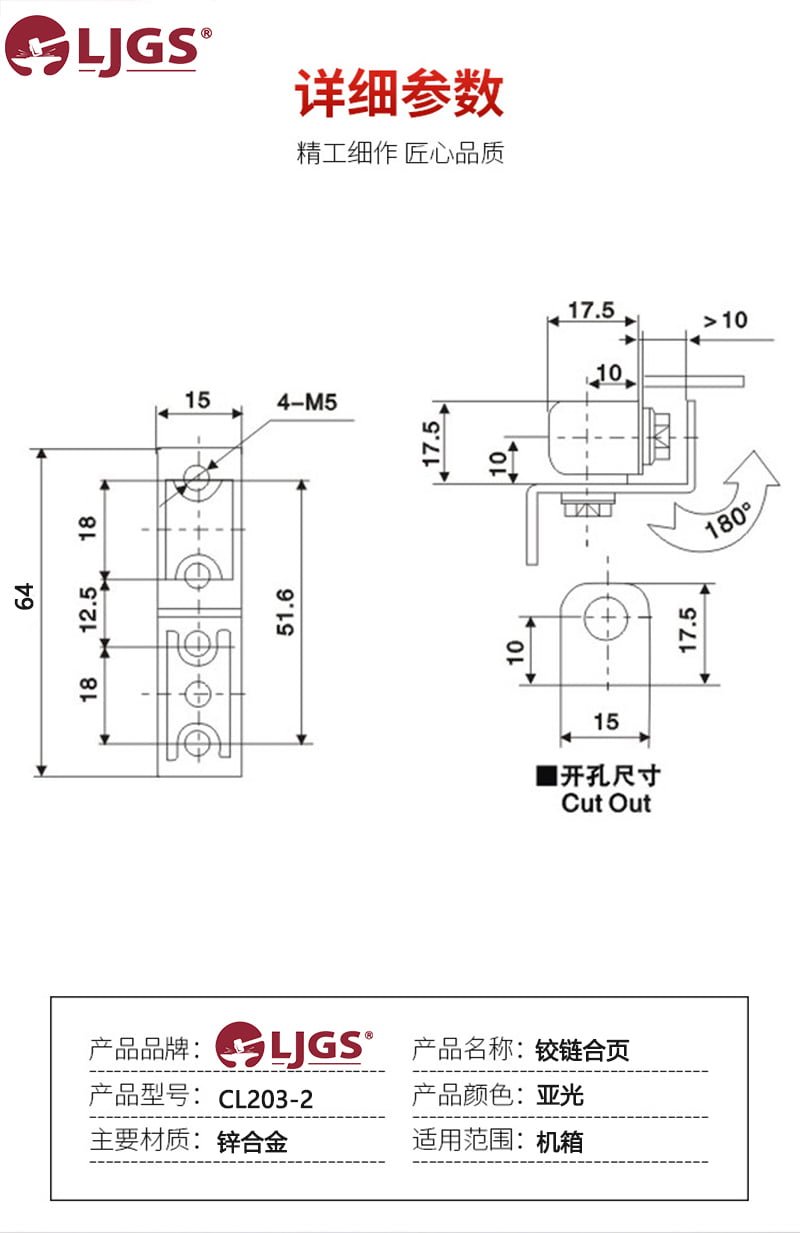 Structure Description: Engineered with an opening angle of 180°, the CL203-2 allows for versatile applications across multiple industries. This design feature enables smooth operation and easy access, making it ideal for both residential and commercial uses.