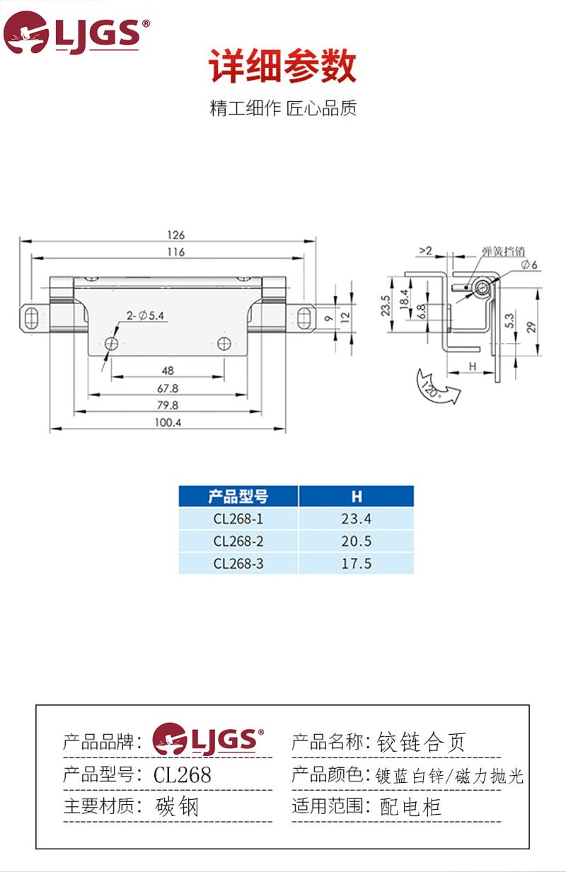 Advanced Structural Design The CL268 series hinges boast an opening angle of 120°, providing ample flexibility for a wide range of applications. The design facilitates easy installation and smooth operation, ensuring that your components move seamlessly without resistance.