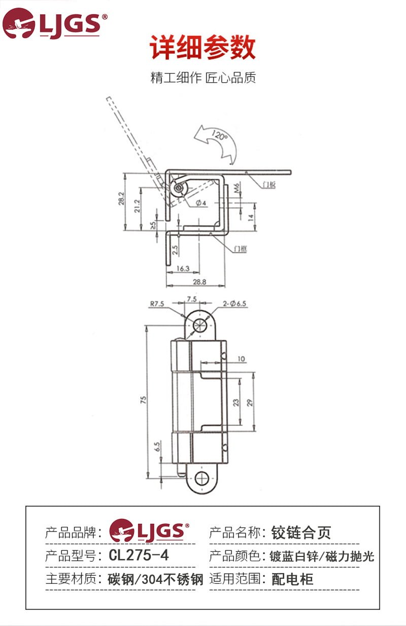 Structure Description: The Cl275-4 features an impressive opening angle of 120°, providing ample accessibility for various applications. This design facilitates easy installation and operation, making it a versatile choice for both industrial and residential uses.