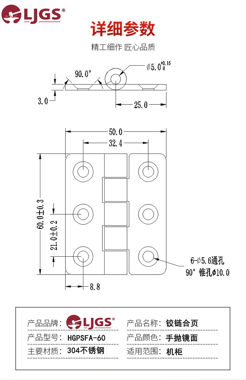 Elevate the functionality and aesthetics of your doors with the Hgpsfa-60 Stainless Steel 304 Hinge, meticulously crafted by LiangJiang. As a cornerstone in hinge technology, this product not only meets but exceeds the highest industry standards, ensuring that every swing of your door is smooth and steadfast.