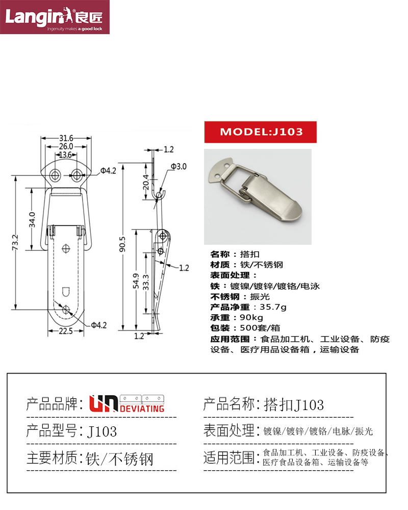 Innovation is at the heart of what we do at LiangJiang. We are at the forefront of hinge technology, constantly developing new solutions to meet the evolving needs of our customers. The J103 Carbon Steel/Stainless Steel 201/Stainless Steel 304 Toggle Latches are a testament to our commitment to innovation, offering a unique combination of materials and finishes for enhanced durability, functionality, and aesthetic appeal.