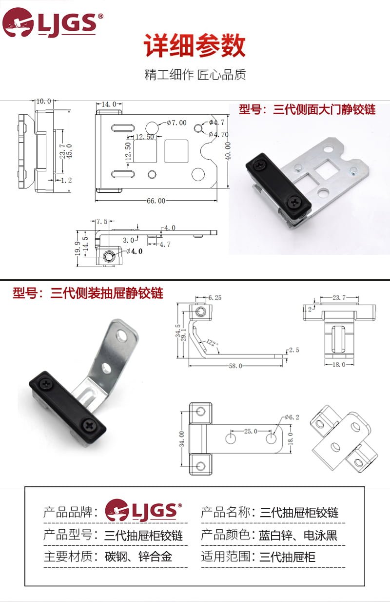 The LJ-18 hinge features a striking finish that combines blue and white zinc plating on the back with electrophoretic black on the cover. This dual-tone design not only enhances the visual appeal of the hinge but also ensures long-lasting protection against wear and tear.