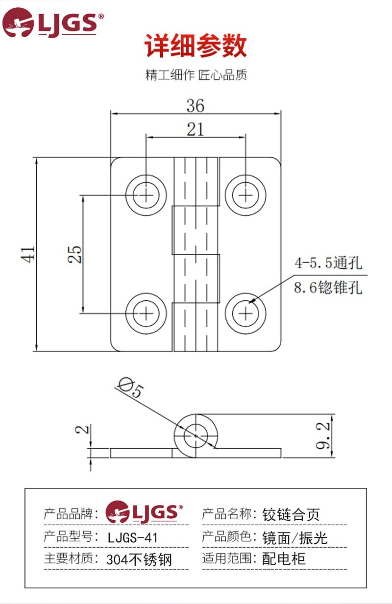 Whether you’re a homeowner looking to renovate your space or a professional seeking reliable hardware solutions, the LJGS-41 304 Stainless Steel Hinge offers the perfect blend of style, functionality, and cutting-edge technology. Trust LiangJiang for hinges that transform ordinary doors into remarkable gateways, making every opening and closing an effortless experience. Choose LJGS-41—where durability meets design excellence.