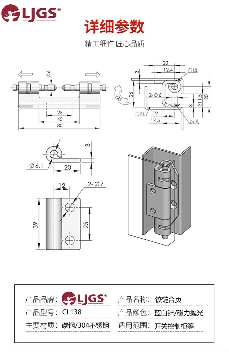 Elevate your next project with the CL138 Carbon Steel/Stainless Steel Hinge—where durability meets innovation for unparalleled performance. Choose LiangJiang for hinges that not only meet but exceed your expectations!